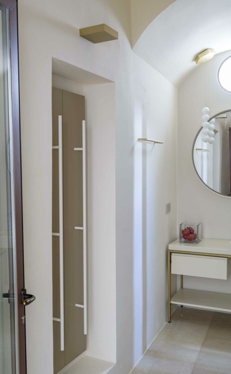 Il bagno en suite aggiunge un tocco di lusso, completato da un esclusivo bagno turco per un’esperienza di puro benessere e relax.