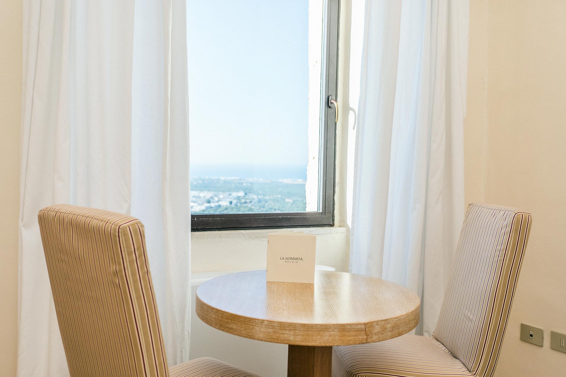 Situata al piano superiore, questa camera si affaccia sugli aranci del nostro giardino, con una vista in lontananza sul mare scintillante lungo la costa di Ostuni.